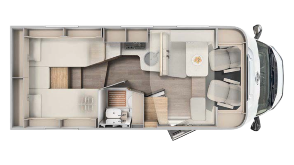 Heel ruimtelijk inrichting met comfortabele zithoek en veel opbergruimte Zo kijk je relaxt tv of doe je een middagdutje.