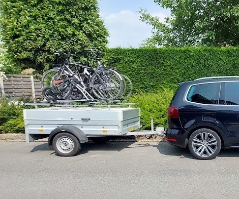 Aanhangwagen te huur voor: 15€ per dag of 80€ voor een ganse week. 200€ waarborg. 4 Thule Pro Ride rails, met 4x slot om fietsen te beveiligen tegen diefstal. Al het nodige materiaal voor de fietsen vast te maken is ook aanwezig. Voor de nummerplaat moet u zelf zorgen.